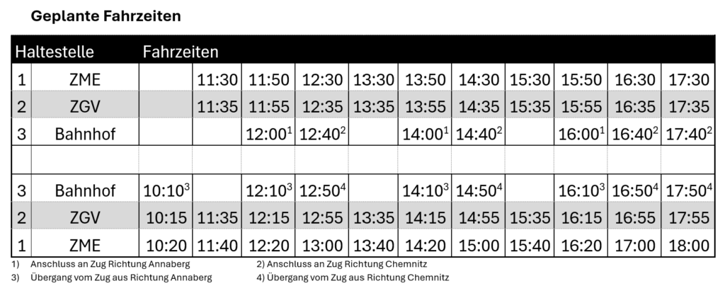 Beide Ausstellungen werden am 21. und 22. Februar, jeweils von 10–18 Uhr, öffnen. Zwischen den Ausstellungsorten im ehem. Schützenhaus (Witzschdorfer Str. 15) und der Waldkirchner Str. 14 (nähe Penny-Markt) sowie dem Bahnhof Zschopau wird es einen kostenfreien Pendelverkehr geben – denn Modellbahner freuen sich natürlich, wenn die Gäste mit der Eisenbahn anreisen!