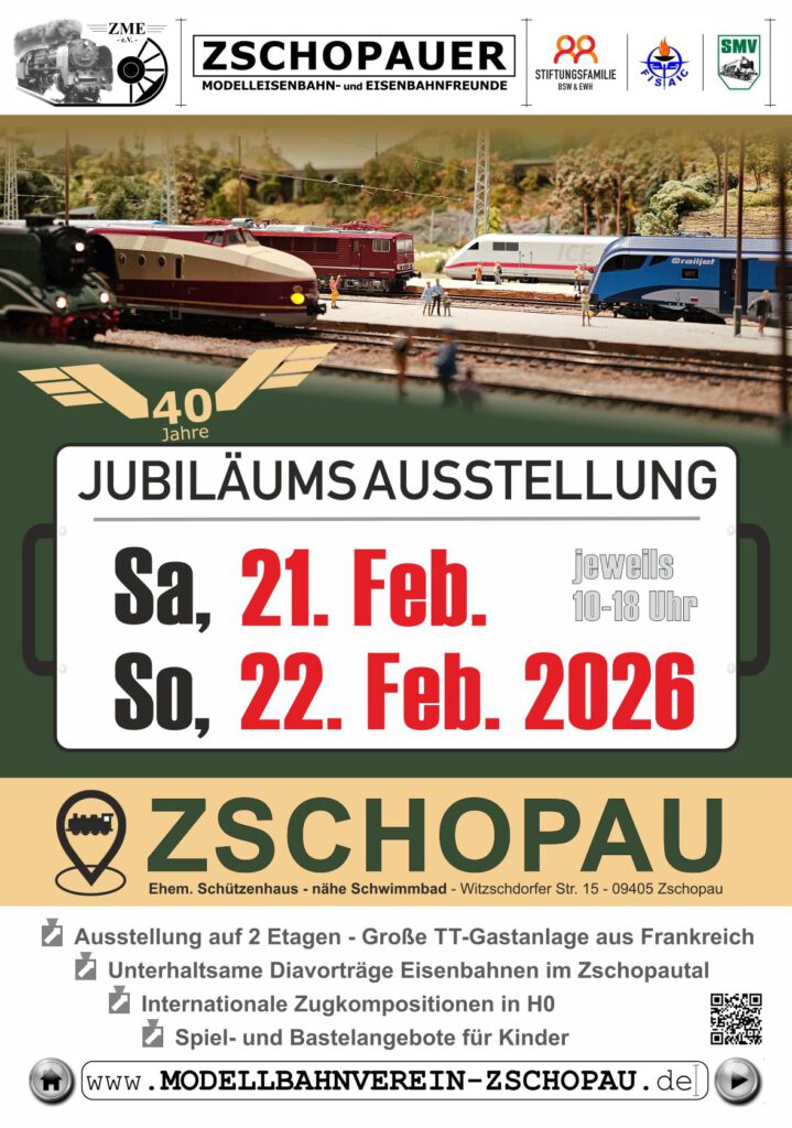 20 + 40 – Zschopau feiert also 60 Jahre Begeisterung für Modellbahn und Eisenbahn! Am 21. und 22. Februar laden deshalb beide Vereine zur Jubiläumsausstellung ein.